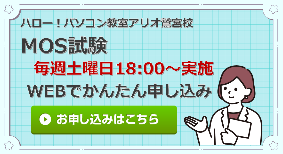ハロー!パソコン教室アリオ鷲宮校です。