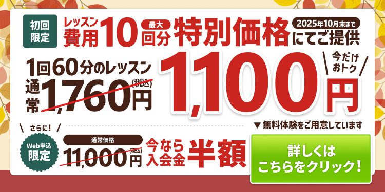 お得なご入会キャンペーン実施中 (10月31日まで)限定先着30名様!