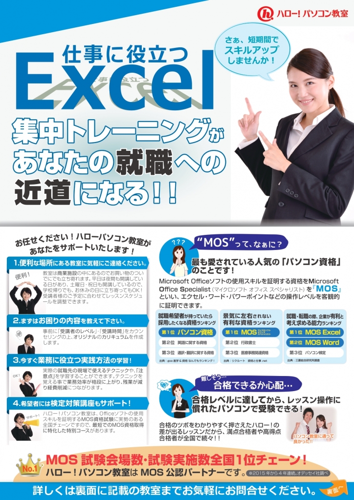 履歴書に書け、就職やその後のお仕事で役立つ「MOS」をあなたも取ってみませんか♪